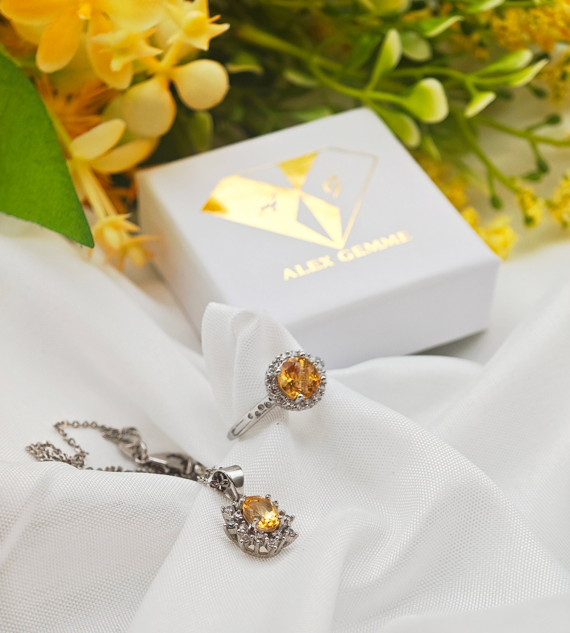 ANELLO CITRINO FLOWER CON CIONDOLO IN OMAGGIO