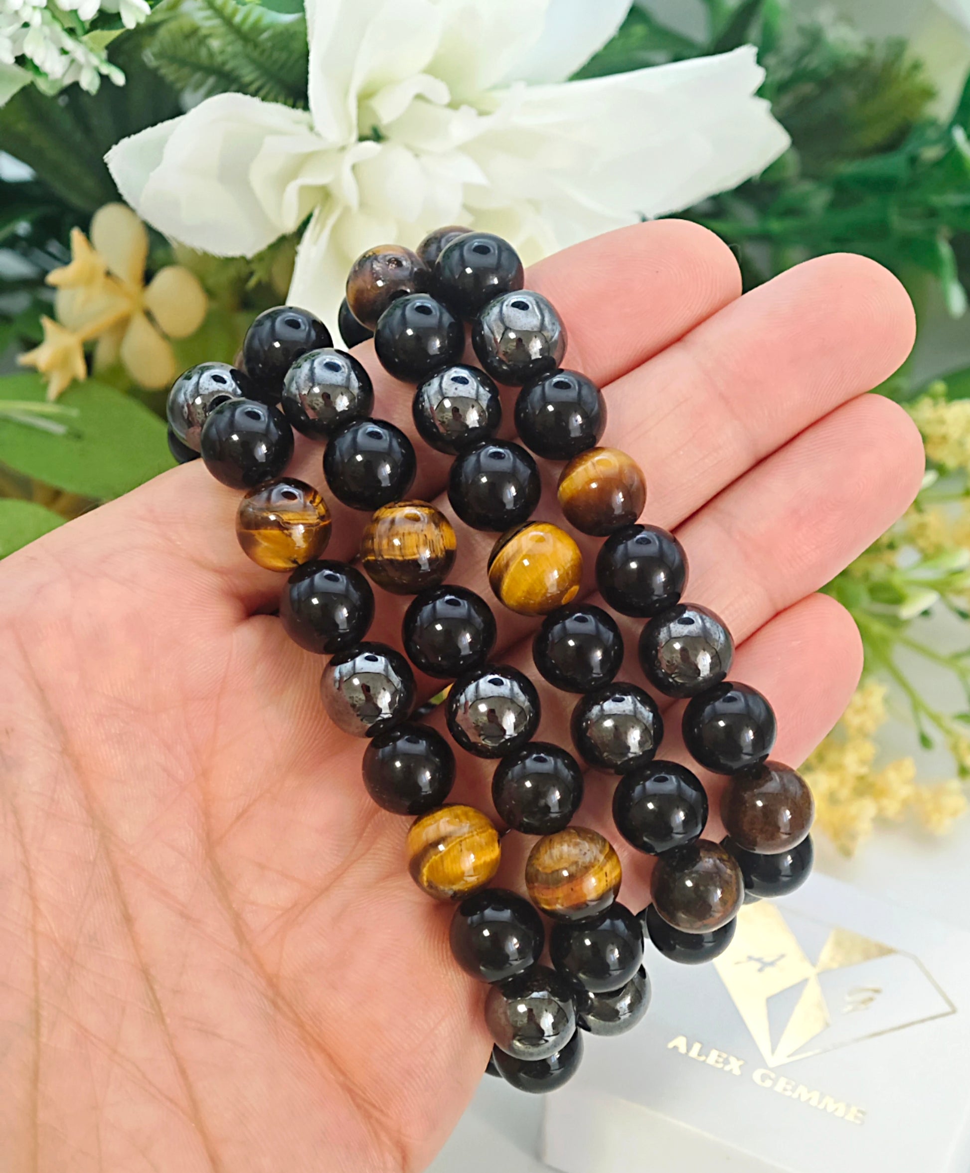 La Tripla Protezione è una potente sinergia composta da Ossidiana Nera, Occhio di Tigre ed Ematite, tre pietre maestre nella difesa dell’energia personale. Questa combinazione crea una barriera energetica stabile e attiva, che respinge negatività, rafforza la volontà e dona radicamento profondo. È ideale per chi cerca sicurezza, centratura e lucidità, specialmente in ambienti carichi o stressanti.