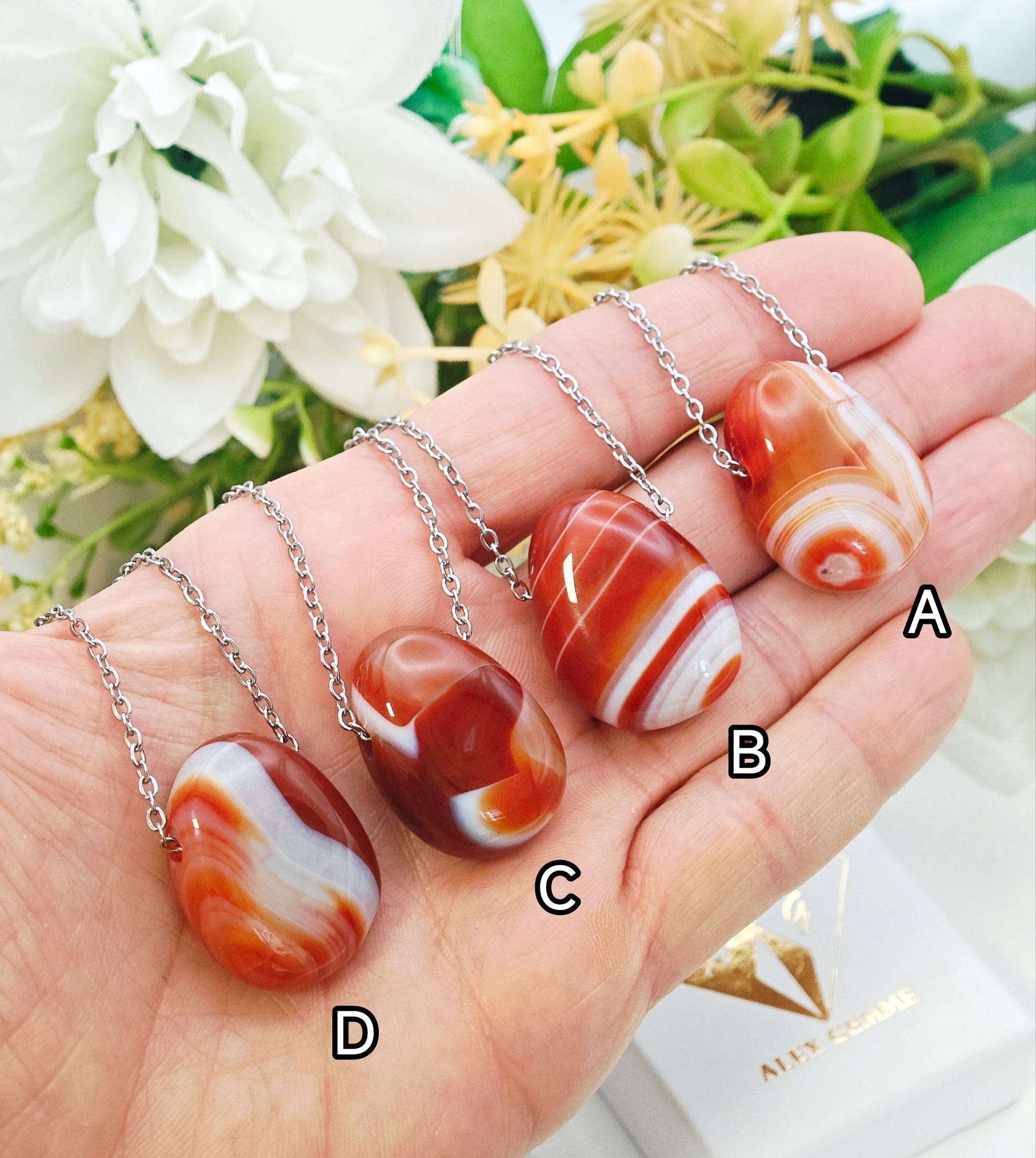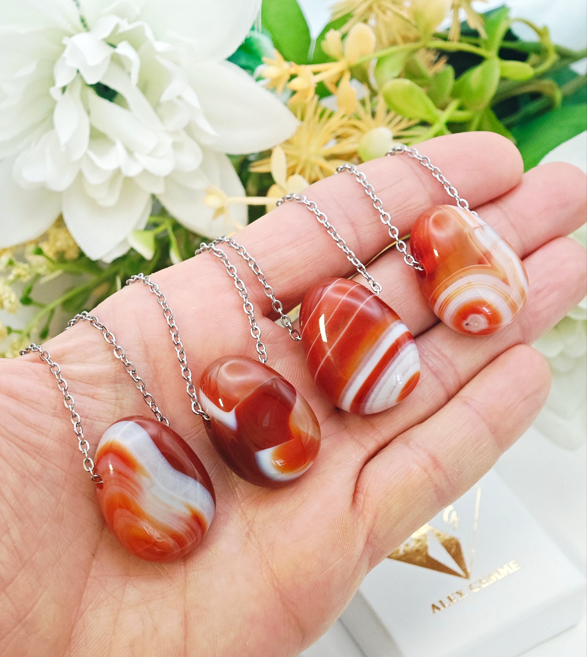 La Corniola è una pietra dai toni caldi che spaziano dall’arancio al rosso intenso. È conosciuta per stimolare la vitalità, la motivazione e la passione, aiutando a superare la paura e ad affrontare la vita con entusiasmo e determinazione.