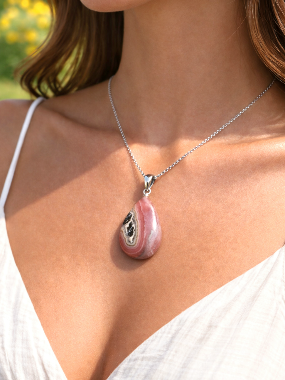 ⚠ Evitare acqua prolungata e urti – La Rodocrosite è una pietra delicata.