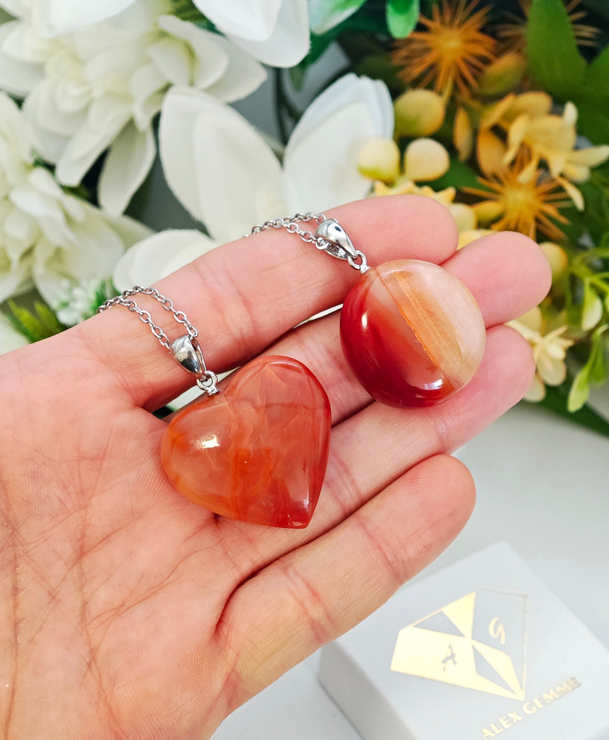 La Corniola è una pietra dai toni caldi che spaziano dall’arancio al rosso intenso. È conosciuta per stimolare la vitalità, la motivazione e la passione, aiutando a superare la paura e ad affrontare la vita con entusiasmo e determinazione.