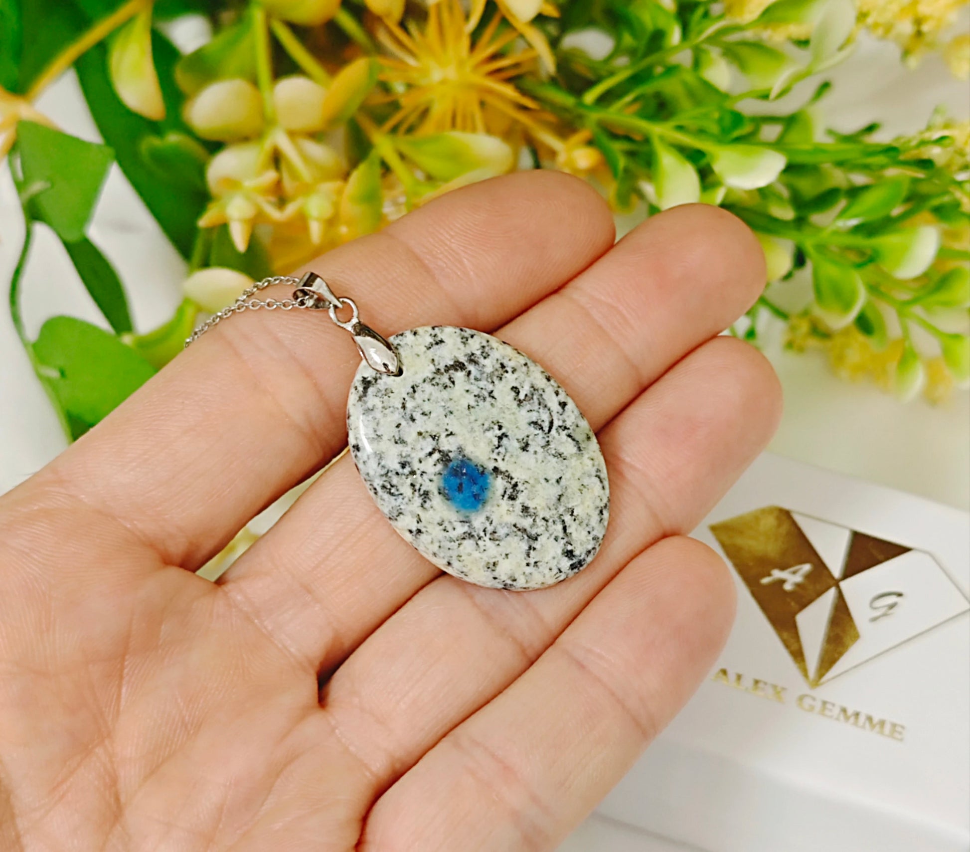 Il Diaspro K2, noto anche come Granito K2 o Azzurrite su Granito, è una pietra unica estratta ai piedi del monte K2, la seconda vetta più alta del mondo. La sua base chiara e granitica ospita macchie azzurre di azzurrite, creando un contrasto potente tra radicamento e intuizione. È considerata la pietra dell’armonia tra mente e spirito, tra realtà e visione.
