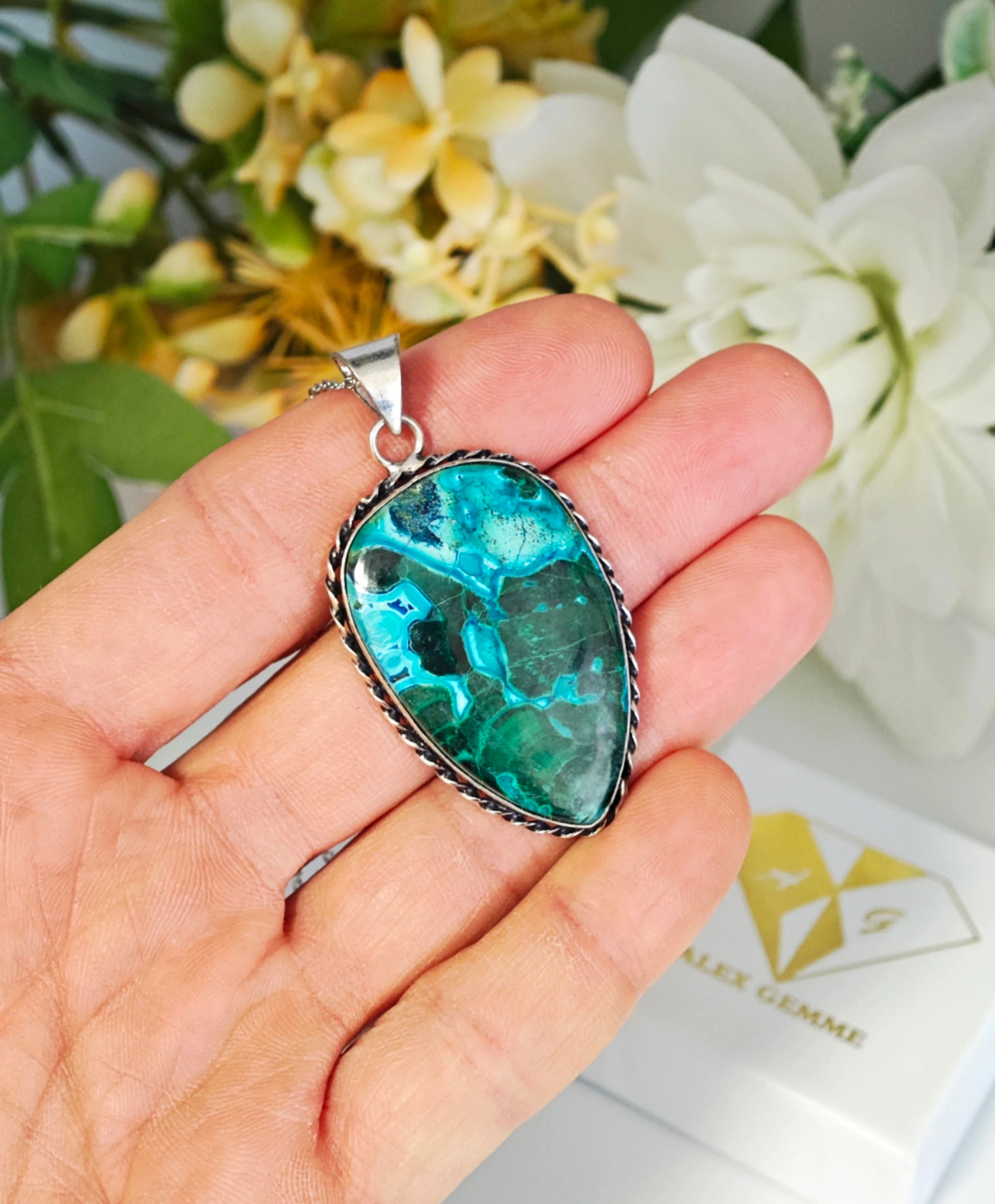 ⚠ Evitare l’acqua e il sole diretto prolungato – La malachite e la crisocolla sono pietre delicate e porose.