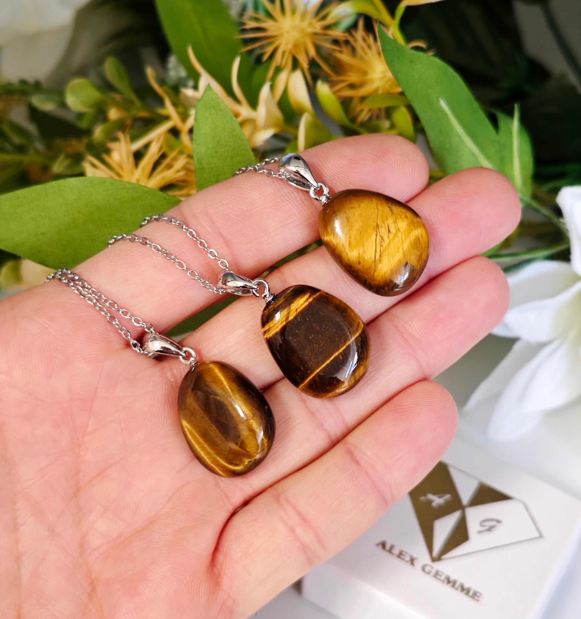 L’Occhio di Tigre è una pietra dalle sfumature dorate e brune, nota per il suo effetto ottico cangiante detto “gatteggiamento”. È da sempre considerata una pietra di protezione, radicamento e chiarezza mentale, perfetta per affrontare le sfide con forza e lucidità.