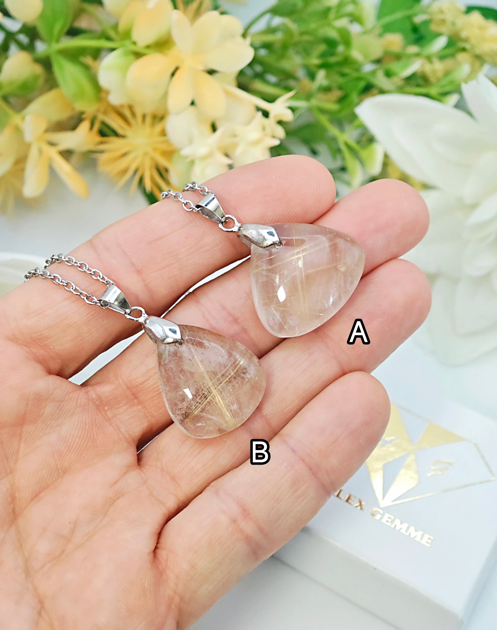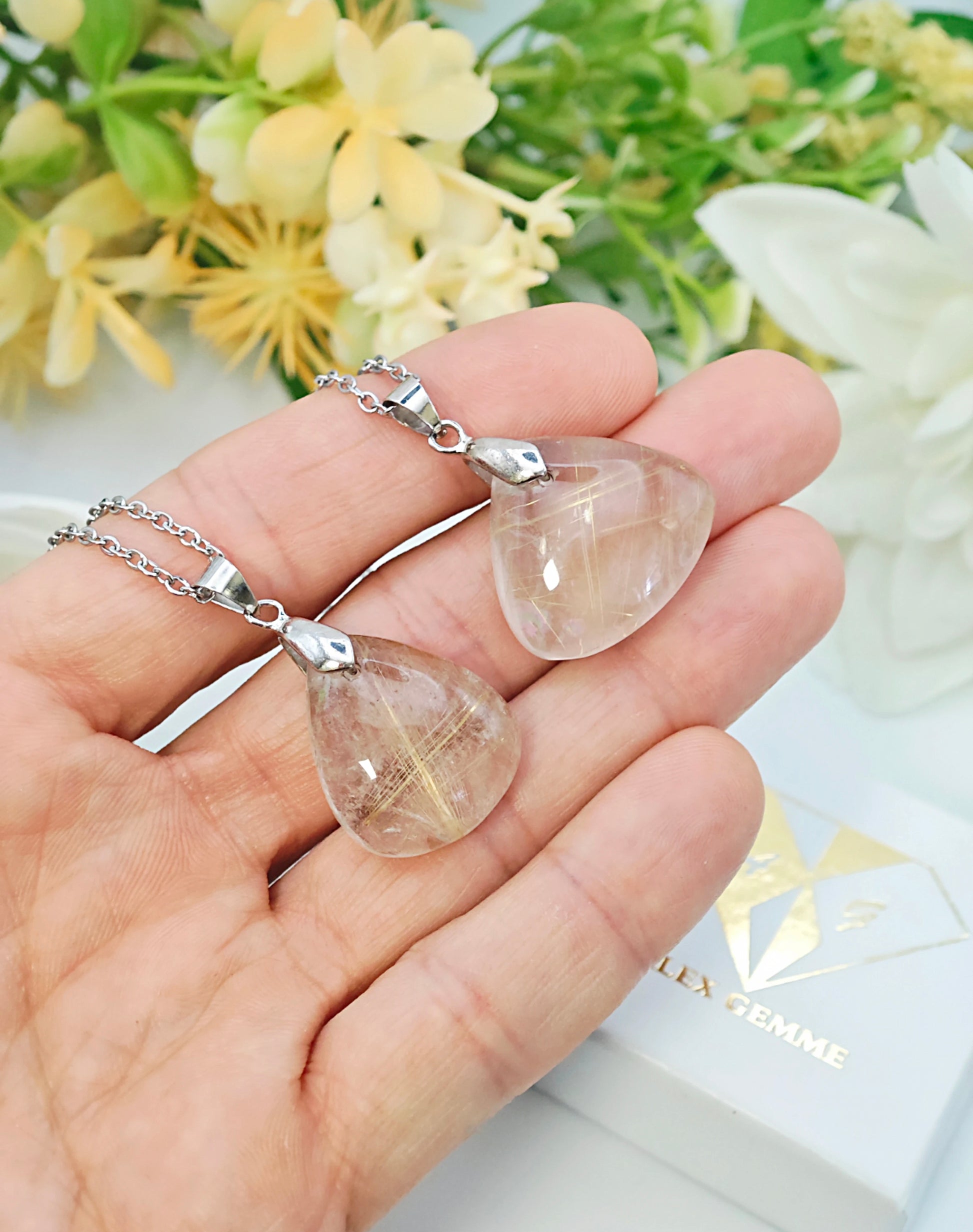 CIONDOLO IN QUARZO RUTILATO DORATO HQ