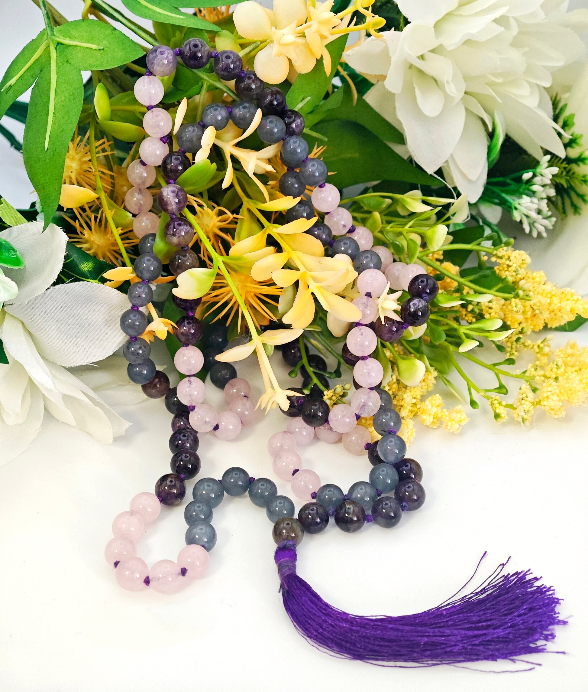 Japamala in Quarzo Rosa, Ametista e Agata – La Collana della Pace Interiore, dell’Amore e della Saggezza Spirituale